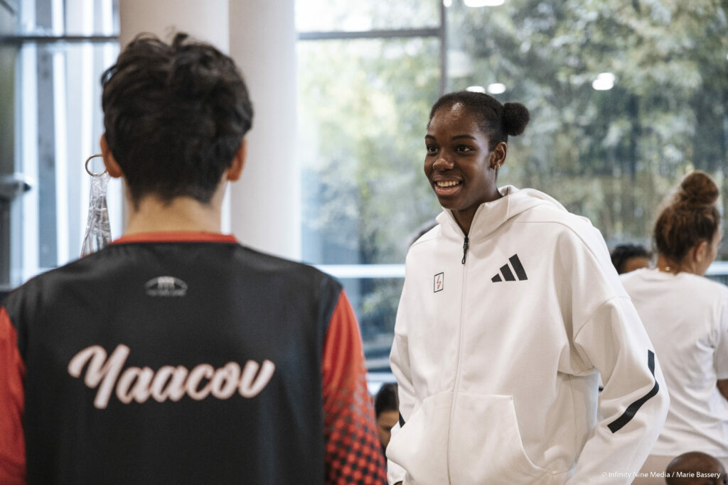 L’Institut d’Hématologie et d’Oncologie Pédiatrique (IHOPe) est un établissement hospitalier spécialisé, qui propose une prise en charge des enfants et adolescents souffrant de cancers et d’hématologie bénigne. Ainsi, joueuses et staff ont d’abord rendu visite aux patients et à leurs parents dans leur chambre afin d’échanger avec eux et de leur offrir un poster de l’équipe 2024-2025. Les patients qui le souhaitaient ont ensuite pu prendre part à l’activité basket dans le hall de l’institut !
